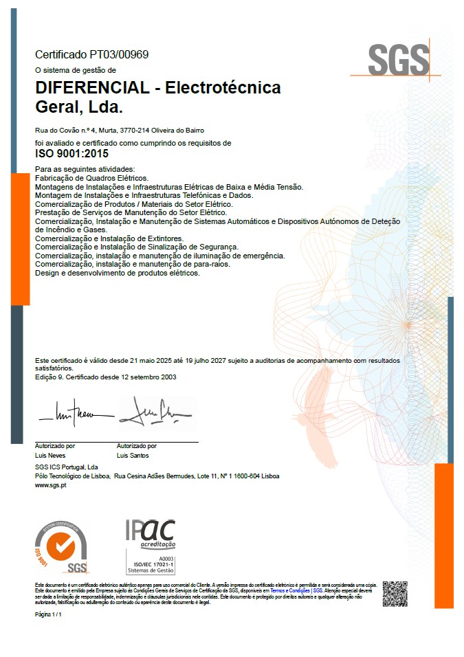 Diferential features The Management System Quality Certificate by SGS-ICS - International Certification Services, according to NP EN ISO 9001: 2015.
